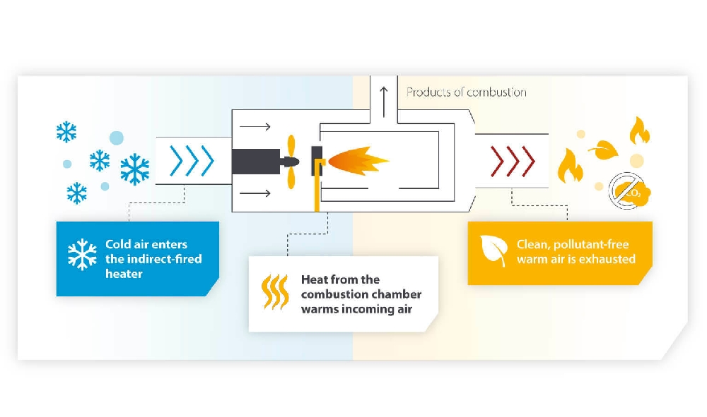 - Reduced Moisture: Since the combustion by-products are vented out, indirect heaters do not add unwanted humidity to the space.