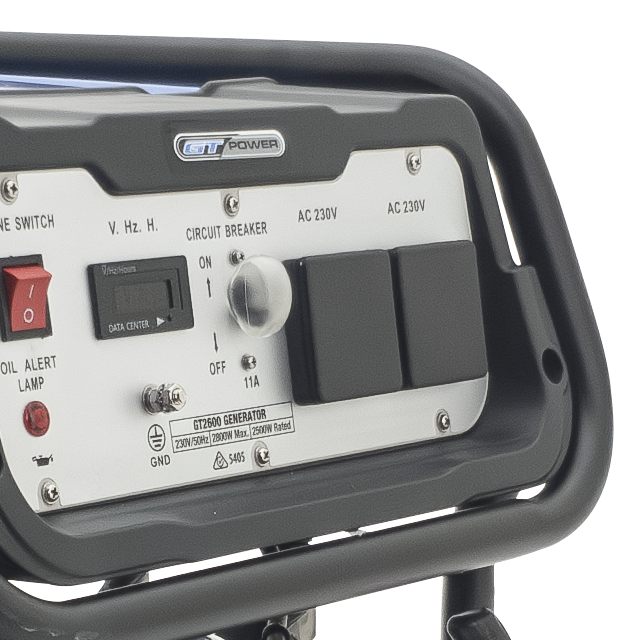 The ‘built for work’ characteristics of the GT POWER range are embodied in the industrial tubular steel frame and the long range fuel tank. The GT2600 includes all the unique GT POWER features like industrial air cleaner & muffler system – for cleaner quieter operating, superior quality alternator & automatic voltage regulator (AVR) – for more stable power output and low oil alert with automatic engine shutdown. Perfect for powering most powertools, household appliances and heaters or even boiling the jug.