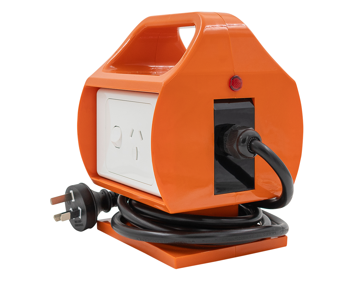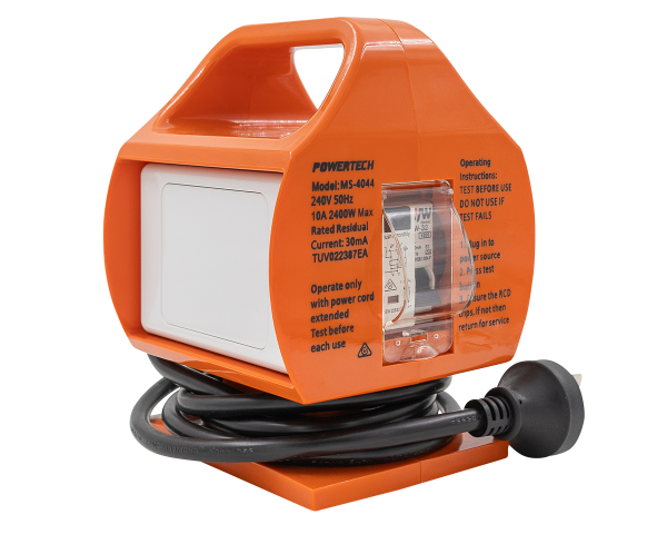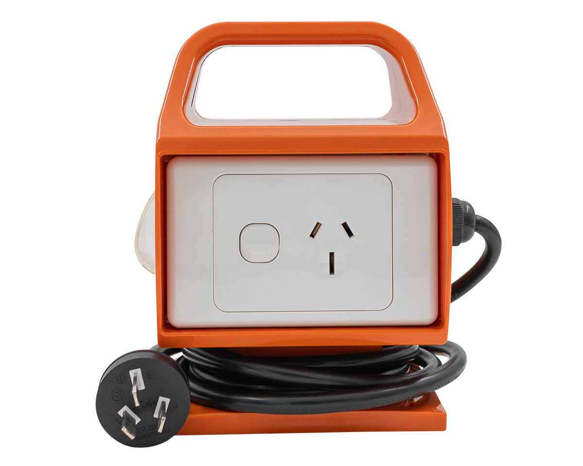 Portable 15A to 10A Power Adaptor with built in RCD. Allows you to plug your 15A (high draw) power equipment in on 10A (home type) power supply without the hassle of changing plugs or the risk of costly damaged to circuits or equipment.