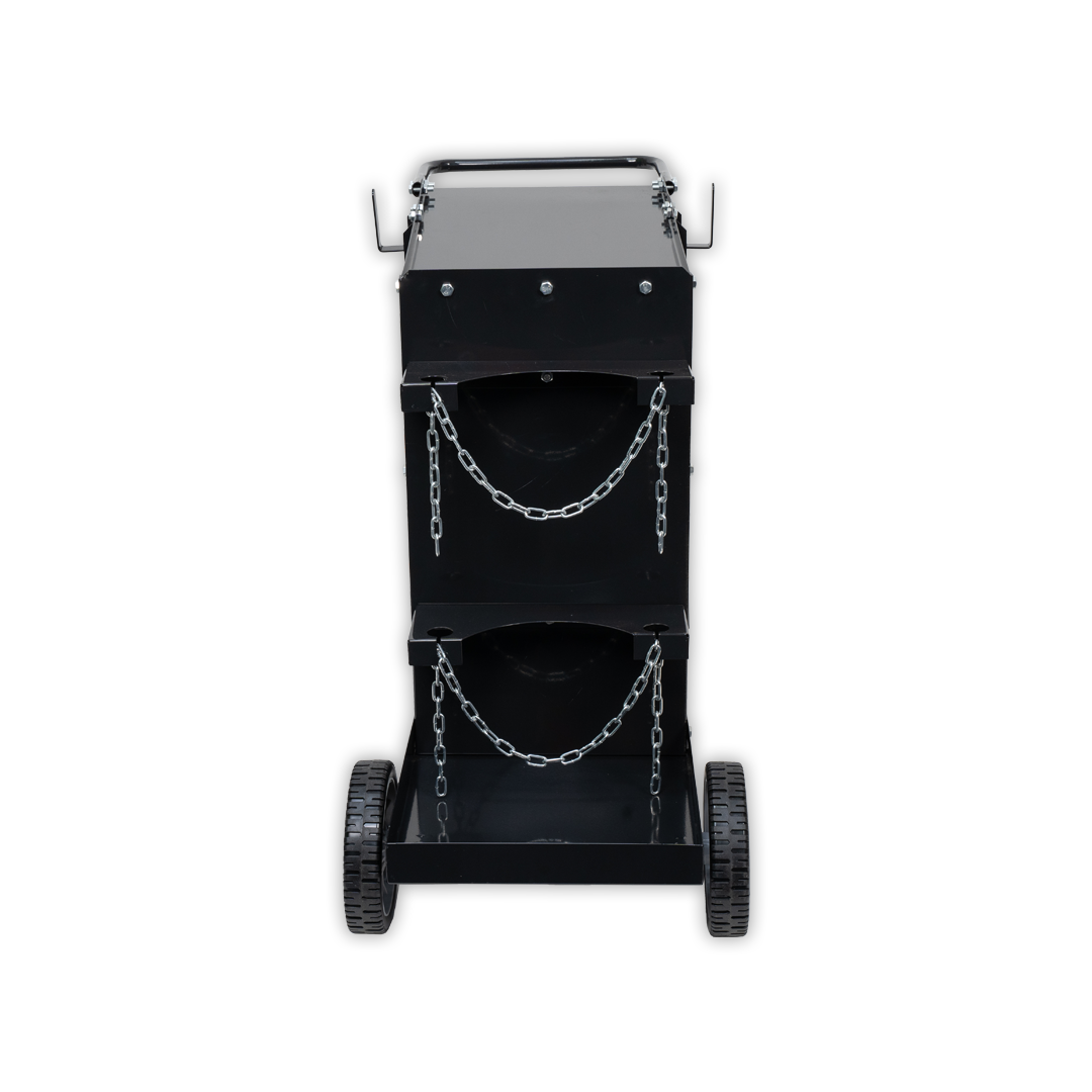 Excellent value, heavy duty, portable work station for a range of welding machines and plasma cutters. Suits most common ACDC Tig welders with room for a water cooler on the lower shelf.