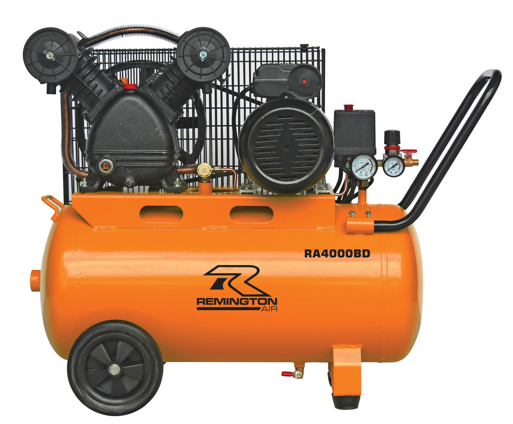 The Remington RA4000BD stands out as a premium portable belt-drive air compressor, built with features you’d expect in a full professional setup. With a robust 2.75HP TEFC motor, this unit runs off a standard 10A 230V power supply, making it ideal for serious DIYers, home workshops, or mobile tradies.