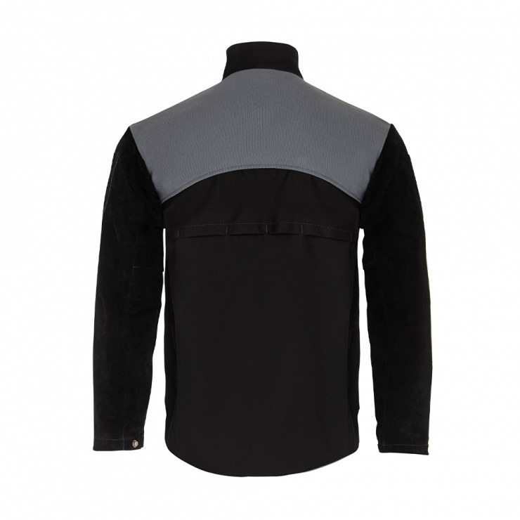 The SPATA welding jacket is the perfect combination of comfort and heavy-duty protection. The jacket gives you quality side split leather on the arms to maximise your protection where you need it most. The front of the jacket maximises your comfort whilst still providing robust protection from heat and splatter with 520-gram/m2 flame retardant cotton. Then to ensure the welder remains cool and comfortable the back and sides of the jacket are constructed from a lighter weight 305-gram/m2 flame retardant cotton with air-vents to allow breathability. All three materials are then combined using 3 ply KEVLAR thread. All aspects of the welder’s day-to-day have been considered in the development of the SPATA jacket including dual zip and press stud front closure, press studs with multiple sizes on the wrists, Velcro on the neck, two inside pockets, and a pocket for a pencil/chalk on the welder’s arm.