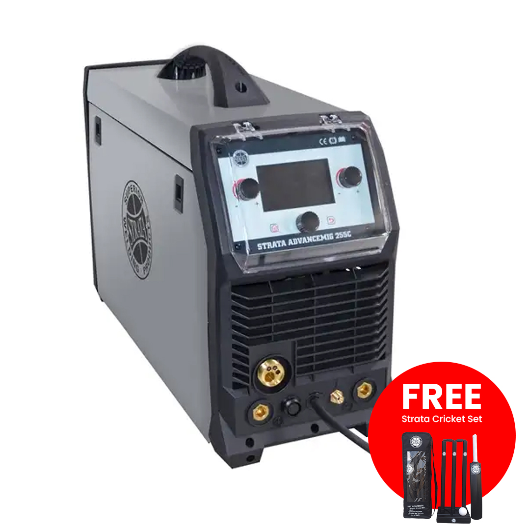 The Strata AdvanceMIG255C is a top-tier 3-in-1 inverter welder delivering serious capability across MIG (synergic), MMA (ARC), and Lift TIG modes — all powered from a standard 15A 230V plug. With a peak output of 250A and a weld thickness capacity up to 13mm, this machine is engineered for workshop, site, and farm environments where precision and reliability matter.