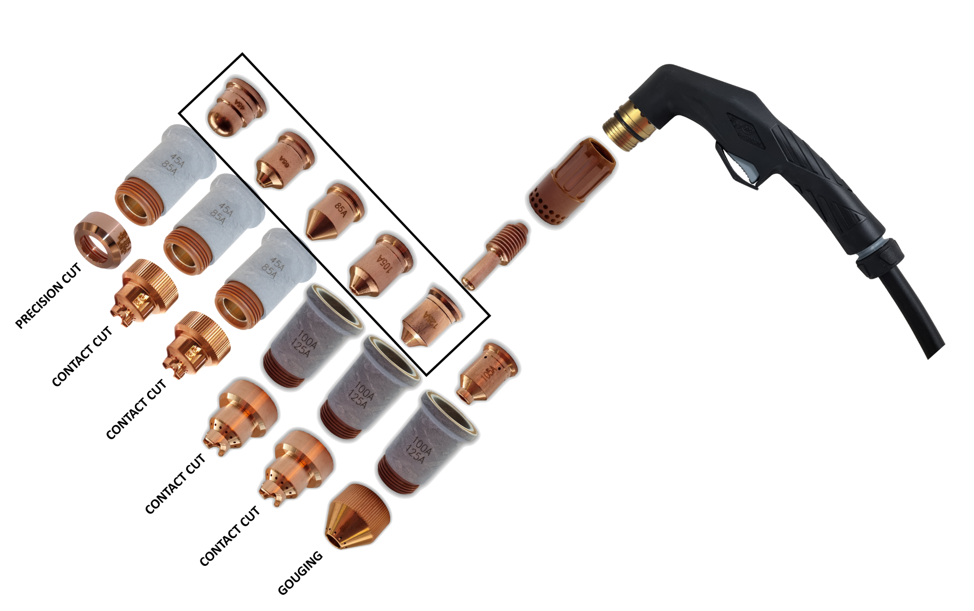 Plasma Cutting Tips for TH125 and TM125 Plasma Torches - Available in 45A - 125A