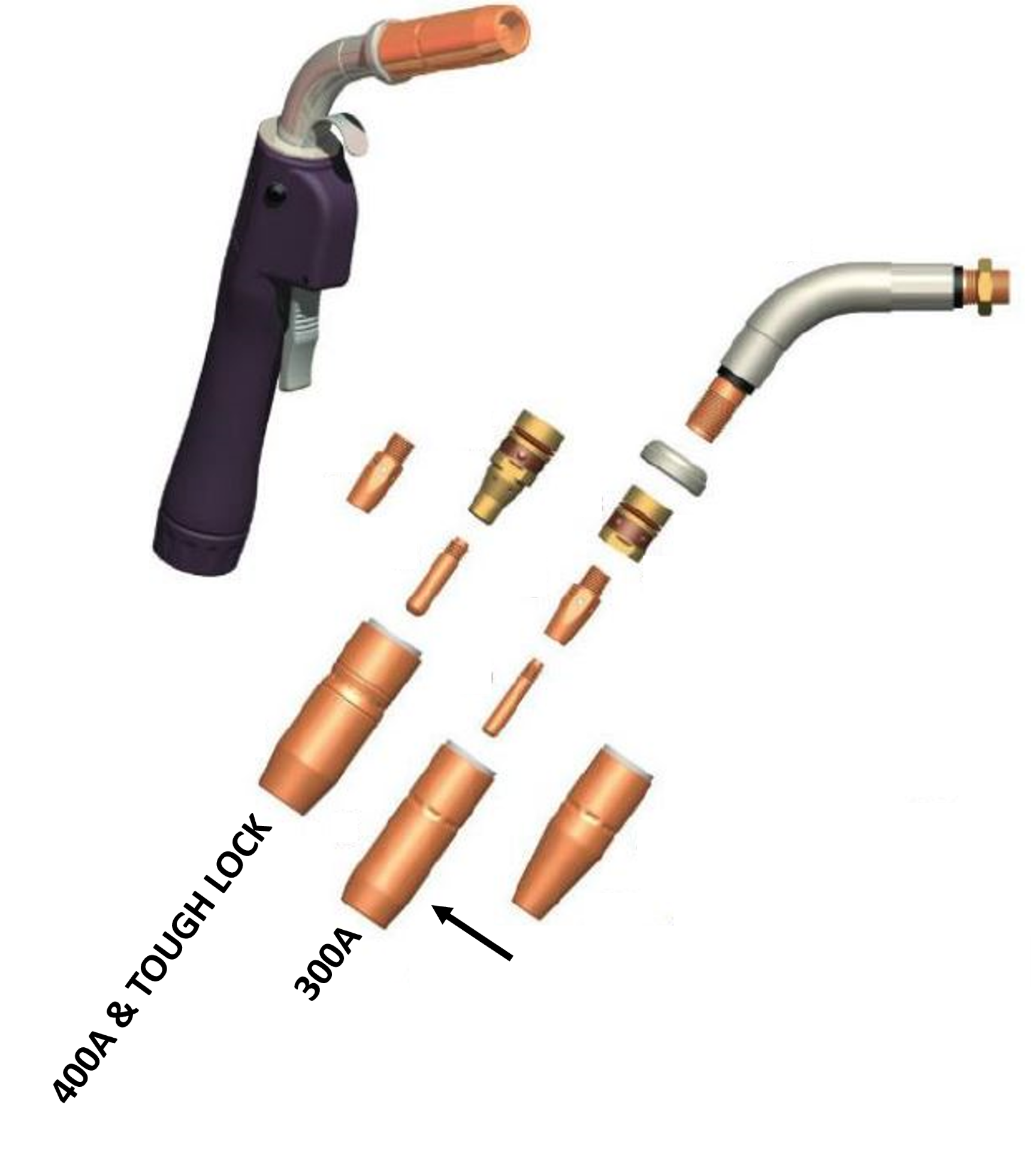 • Fits Tregaskiss style 300A, 400A Mig torch